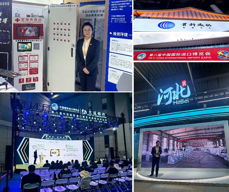 बूथ HB-31 पर, SKYT ने अपने अत्याधुनिक स्मार्ट फर्स्ट एड स्टेशन का प्रदर्शन किया, जो कि सुविधाओं से सुसज्जित है।स्वचालित बाह्य डिफिब्रिलेटर (एईडी)और एक उपयोगकर्ता-अनुकूल इंटरफ़ेस जो चरण-दर-चरण प्राथमिक चिकित्सा मार्गदर्शन प्रदान करता है। यह बुद्धिमान प्रणाली चिकित्सा आपूर्ति वितरण और पहचान सत्यापन को एकीकृत करती है, जो सार्वजनिक स्वास्थ्य और आपातकालीन प्रतिक्रिया समाधानों को आगे बढ़ाने के लिए SKYT की प्रतिबद्धता को प्रदर्शित करती है। इसके साथ ही, SKYT ने स्मार्ट प्रौद्योगिकी और औद्योगिक स्वचालन में अपनी विशेषज्ञता को उजागर करते हुए नियंत्रण कैबिनेट का प्रदर्शन किया।